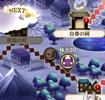 この二つの場所の間には体力20のクエストが控えていて、このクエストをクリアしてからでないと「暗闇の街」へ進むことができません。
