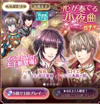 この王子は、規定回数やポイントでゲットできる王子ではなく、ガチャで手に礼る王子です。