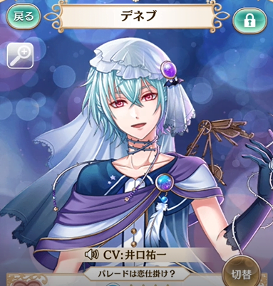 覚醒後の姿あり ネタバレ注意 2016年10月のイベント「幻惑!ホラーゲーム」では、ルナジュエルを集めることで、過去イベント「パレードは恋仕掛け?」のキャラも交換できます! 一年前はまだゲームを始めていなかった私も、ここぞとばかりに「パレードは恋仕掛け?」のデネブくんと交換しましたー! 太ももに思わ