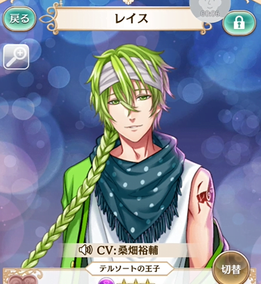 覚醒後の姿あり ネタバレ注意 チュートリアル後に選択できる王子の中のひとり、レイス。 毒薬の国テルソートの王子で上に4人のお兄さんがいます。争いも嫌いで芸術好き。 そんなわけで国政にはかかわらず、絵を描いたりヴァイオリンを弾いたりと気ままな末っ子王子です。 こちら覚醒妖精。 ☆3は覚醒