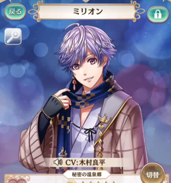 覚醒後の姿あり ネタバレ注意 秘密の温泉郷イベントで登場したミリオンくん。ゲットしました~。 見た目はすごくキラキラしていて人懐っこいのだけれど、それは表向き。実は口がわるくて辛辣です。 けれどミリオンのストーリーを読むと、妙に甘え上手というか(そう感じるのは私だけ?)接近して足湯の中で足を絡めてき