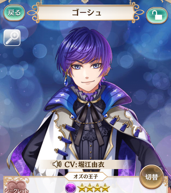 チョコレートの国・ショコラベリィの王子であるコロレ。 CVを務める鈴木千尋のイメージにぴったりの、ふんわりした優しいルックスと雰囲気を持つ、美形王子です。 2017年2月・3月にリングのかけら交換所に登場したコロレさん。 わすれないうちに交換して、覚醒させました! ☆おススメ! 無課金で妖精石を大量