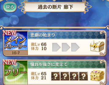 まだまだ続く10章。 6話は「過去の断片 城下町」で展開されます。 「忍び寄る不吉な影」を読むためにクエストをクリアしましょう! ☆おススメ! 無課金で妖精石を大量ゲットする方法☆ 10章5話 「忍び寄る不吉な影」1話目 まずは1話目から。 敵Lvは65、赤が有効なクエストです。 このクエストをクリ