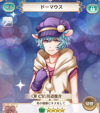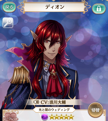 影のある王子の中でも、特に影が濃いなあと思うレイヴン王子。 他界したフィアンセをずっと思い続けている王子です。 レイヴンの声優は鳥海浩輔さん。鳥海さんは夢100ではハクも担当していて、どちらも無口物静か系王子という共通項があったりします。 さて、そんなレイヴンを覚醒させてみました。 ☆おススメ! 無