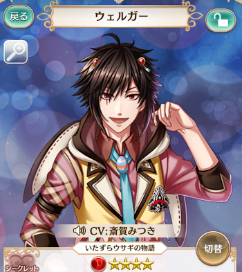 イースターを意識したのかな?というイベント「いたずらウサギの物語」が始まりました! 今回のイベントの舞台は、憧憬の国チルコ。 チルコの4兄弟が登場しますが、ガチャ対象の王子はドローレとモルタ。 イベントクエストのご褒美王子が、ウェルガーとネロです。 前回のチルコのイベントと逆だね! というわけで、さ