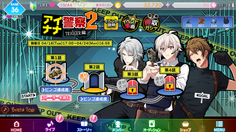 約1週間前にダウンロードして初めてプレイしてみたアイドリッシュセブン! 難しい!と思った音ゲーもだんだん慣れてきたところで、イベントに参加してみました。 現在アイドリッシュセブンで行われているイベントは「アイナナ警察2」 TRIGGERの三人が登場するストーリーを読んでいるのですが…… ミッションが