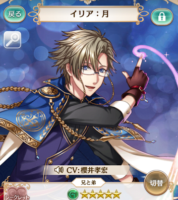 ネタバレ注意 魔術の国・ソルシアナの双子王子のお兄さん、イリア。 だいぶ前のイベントですが「兄と弟」でゲットしたイリアのストーリーをようやくエンディングまで読みました。 いったいいつのイベントだったのか疑問に思って調べてみたら、2016年の4月くらい。なんと半年も前だったんだね! イリアは2体ゲット