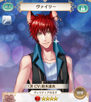 夢100にはしょっちゅうイベントに登場する人気王子と(砕牙とかリカとかフロストとか)滅多にイベントに登場しない控えめな王子がいますが(笑) 今回のイベントAfter Storys に登場する王子も、控えめな王子ばっかりですね。 ヴァイリーも、私が夢100を始めてからイベント初か2回目か、それくらいの