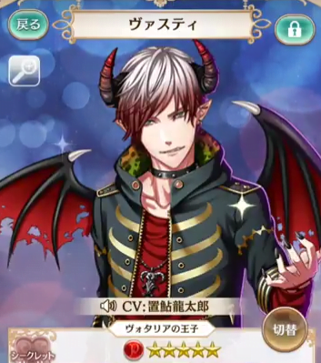 ネタバレ注意 罪過の国ヴォタリアの王子、ヴァスティは、とっても俺様な王子です。 気に入ったものは全部自分のものにしていく王子。 そして態度は余裕たっぷり。 その姿はまるでジャイアンのよう!! ☆おススメ! 無課金で妖精石を大量ゲットする方法☆ 俺様王子ヴァスティがカッコイイ! こんな感じに。ヒロイン